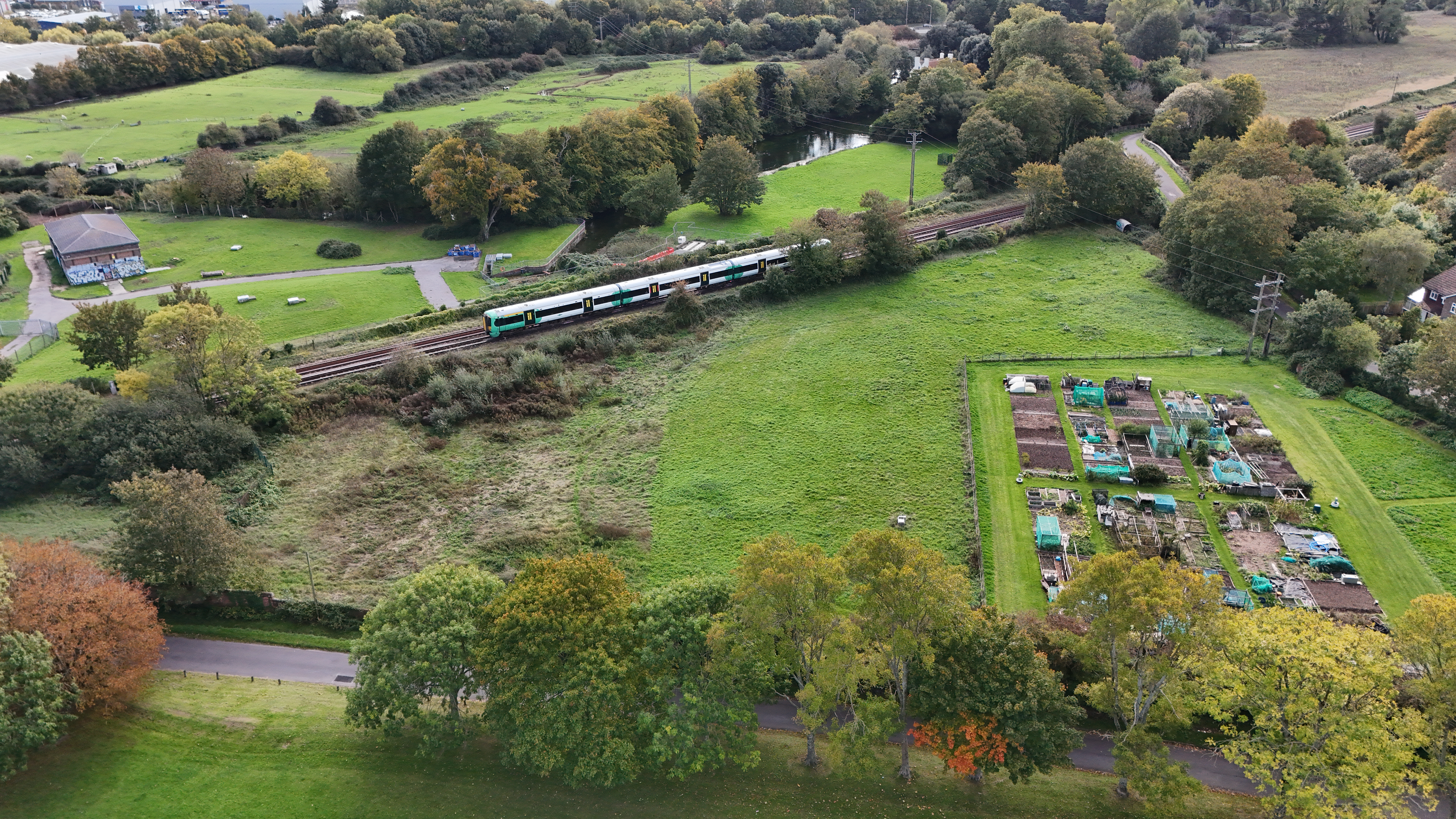 There is a continual background noise of traffic, mainly from the nearby dual carriageways but the distinctive sound of railway trains gives just enough warning to capture them as they use the busy rail line (London or Brighton to Portsmouth, Southampton and the West).
