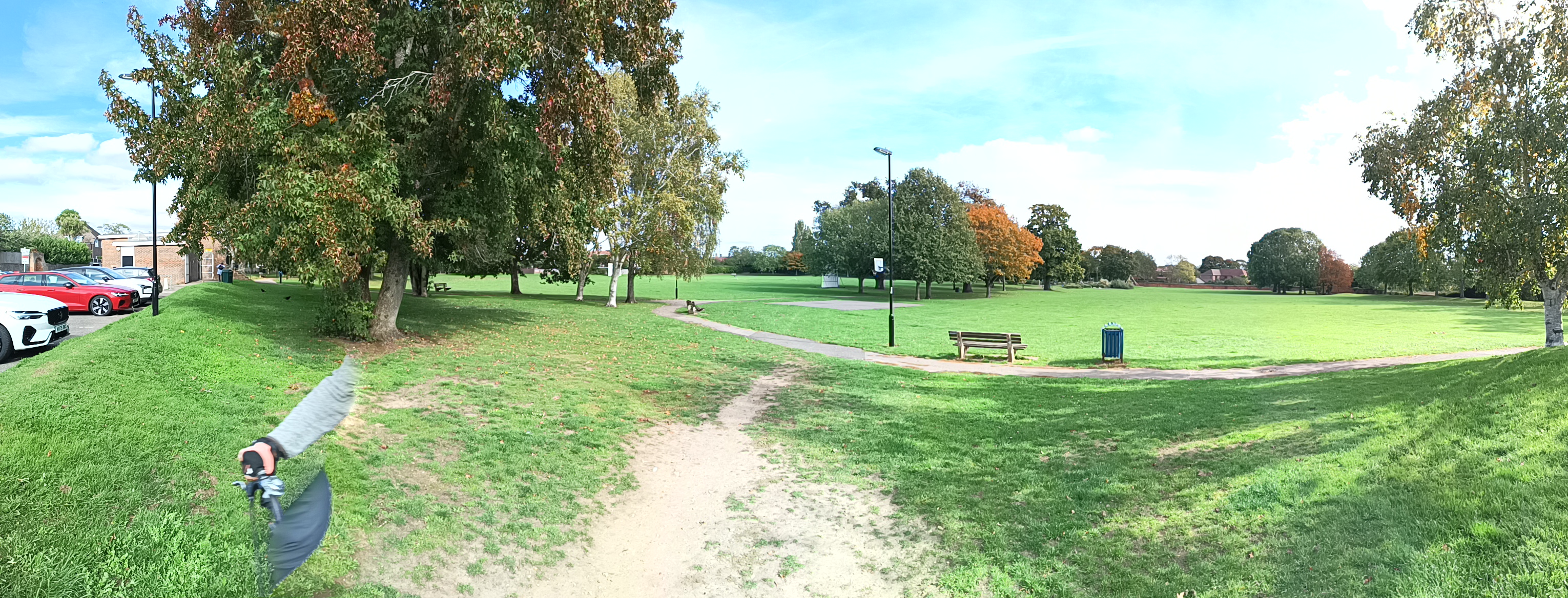 It’s a fairly large, open public park, with a variety of features: rugby pitches, a skate park, tennis courts, bowling green + clubhouse, a children’s play area with climbing frames and swings.