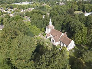 A large sports field with extensive facilities and a lovely old church hidden in the trees