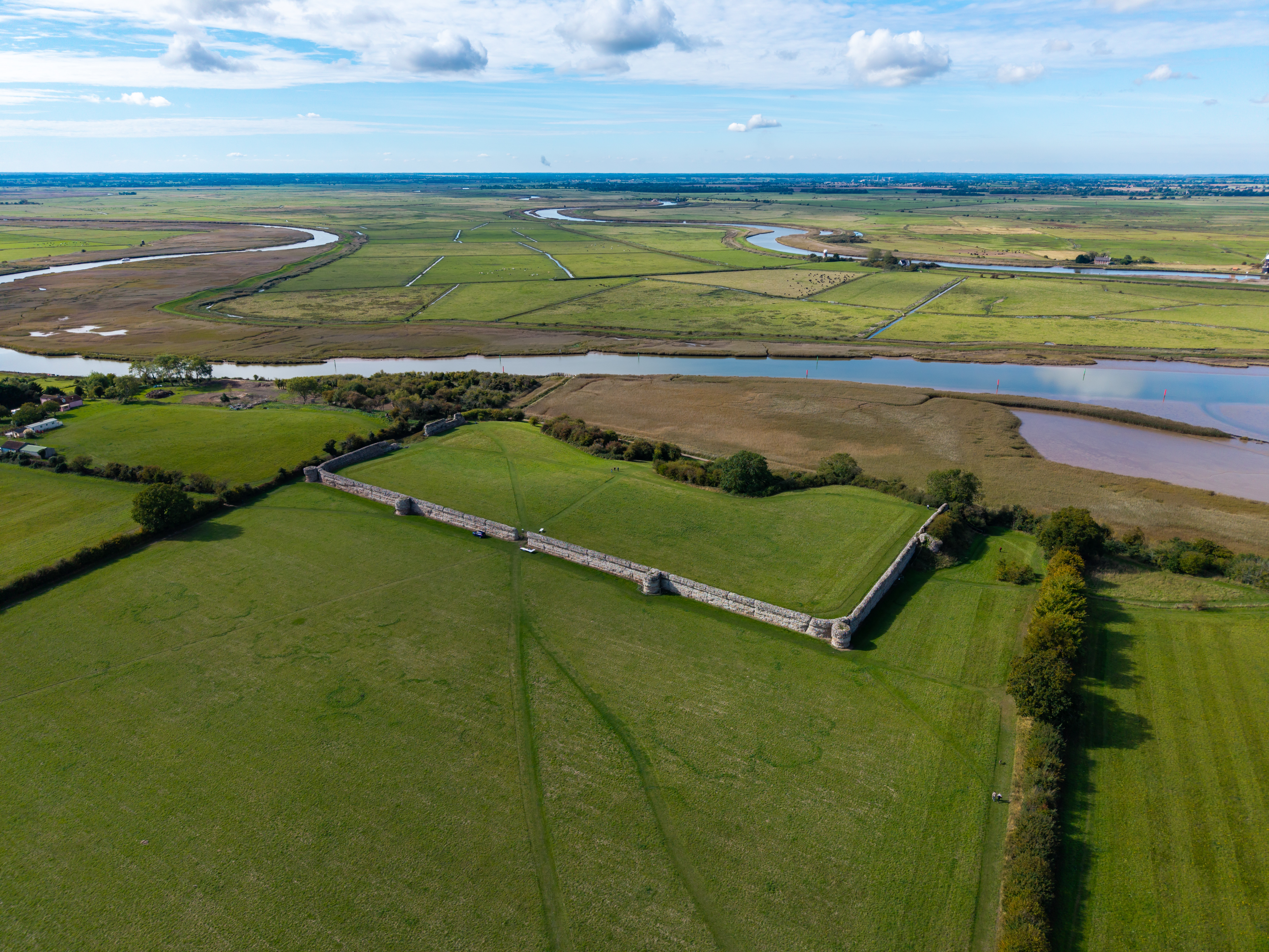 Burgh Castle is best viewed from the air in order to get an idea of it's scale and layout. On top of that the surrounding countryside and river is just incredible. Across the River Waveney you can see the Berney Arms Windmill and Red Mill; neither of these are easily accessible from the ground. TOAL from the mown areas around Burgh Castle. There is limited free parking near the church or paid parking onsite. Mornings or evenings are the best time to visit, and outside school holidays as it gets busy.