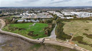 There is a distant view of the Portsmouth skyline, Views of Langstone, Hayling Island and the bridges, a sewage works and industrial estate. Worth a battery at least.