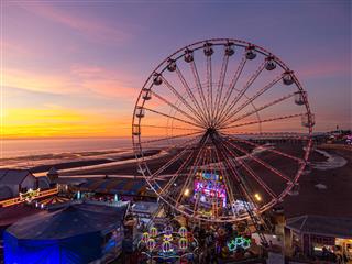Blackpool Central Pier sits roughly midway along Blackpool’s famous promenade and extends straight out into the Irish Sea. Visually, it offers strong leading lines, Victorian structural symmetry, and a classic backdrop including Blackpool Tower and the seafront skyline. From an aerial perspective, it’s one of the most recognisable seaside structures in the UK.