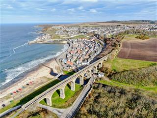 Gardenstown is one of a series of villages along the north coast of Aberdeenshire, all characterised by a spectacular and precipitous drive down to the shoreline, and picturesque homes along the seafront.