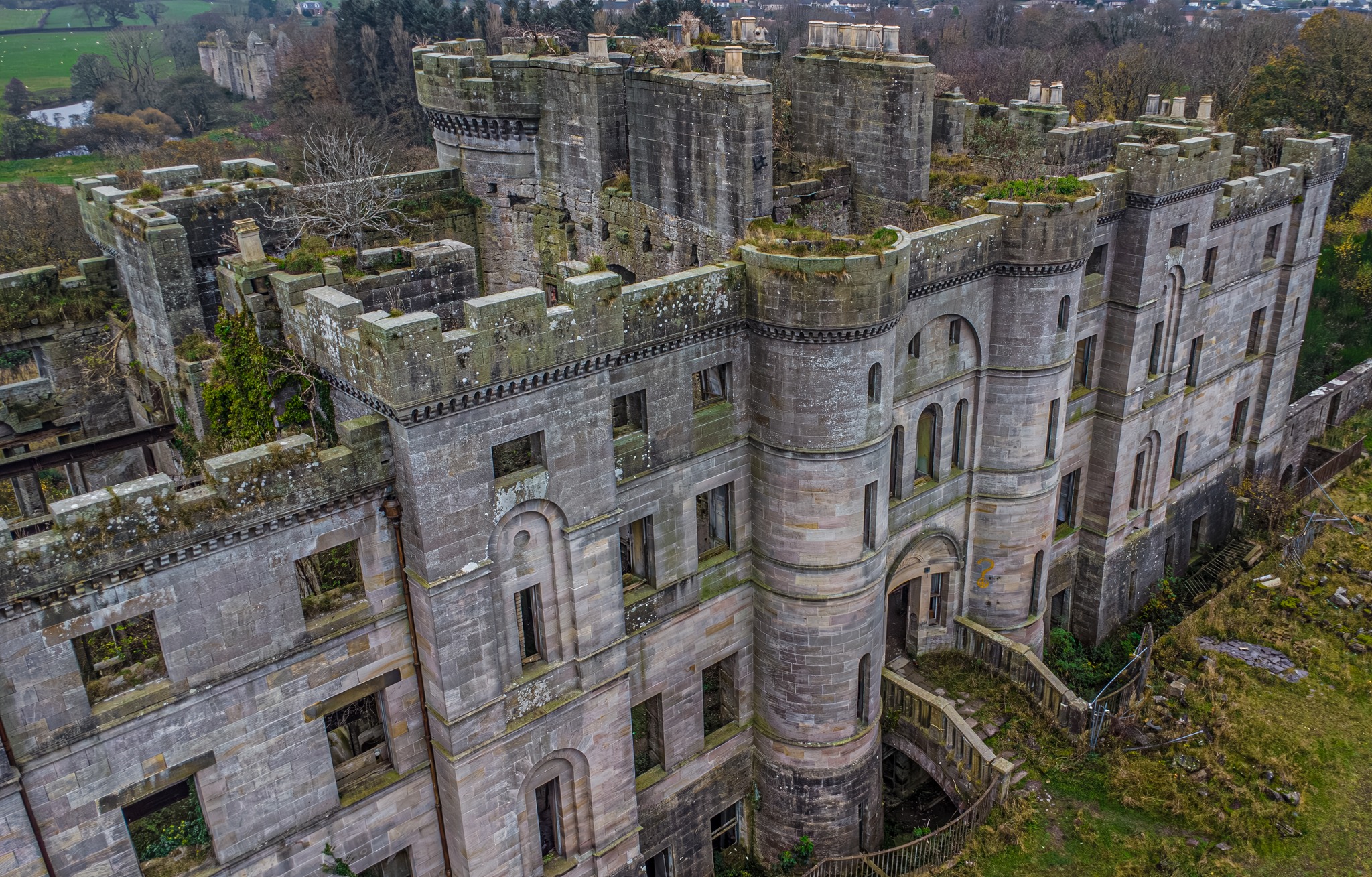 Dalquharran Castle was designed by Robert Adam, the architect responsible for the building of nearby Culzean Castle. Despite enormous investment in the preservation of the 18th century Culzean Castle by the National Trust of Scotland, its contemporary Dalquharran has for various reasons fallen into disrepair and ruin in recent years.