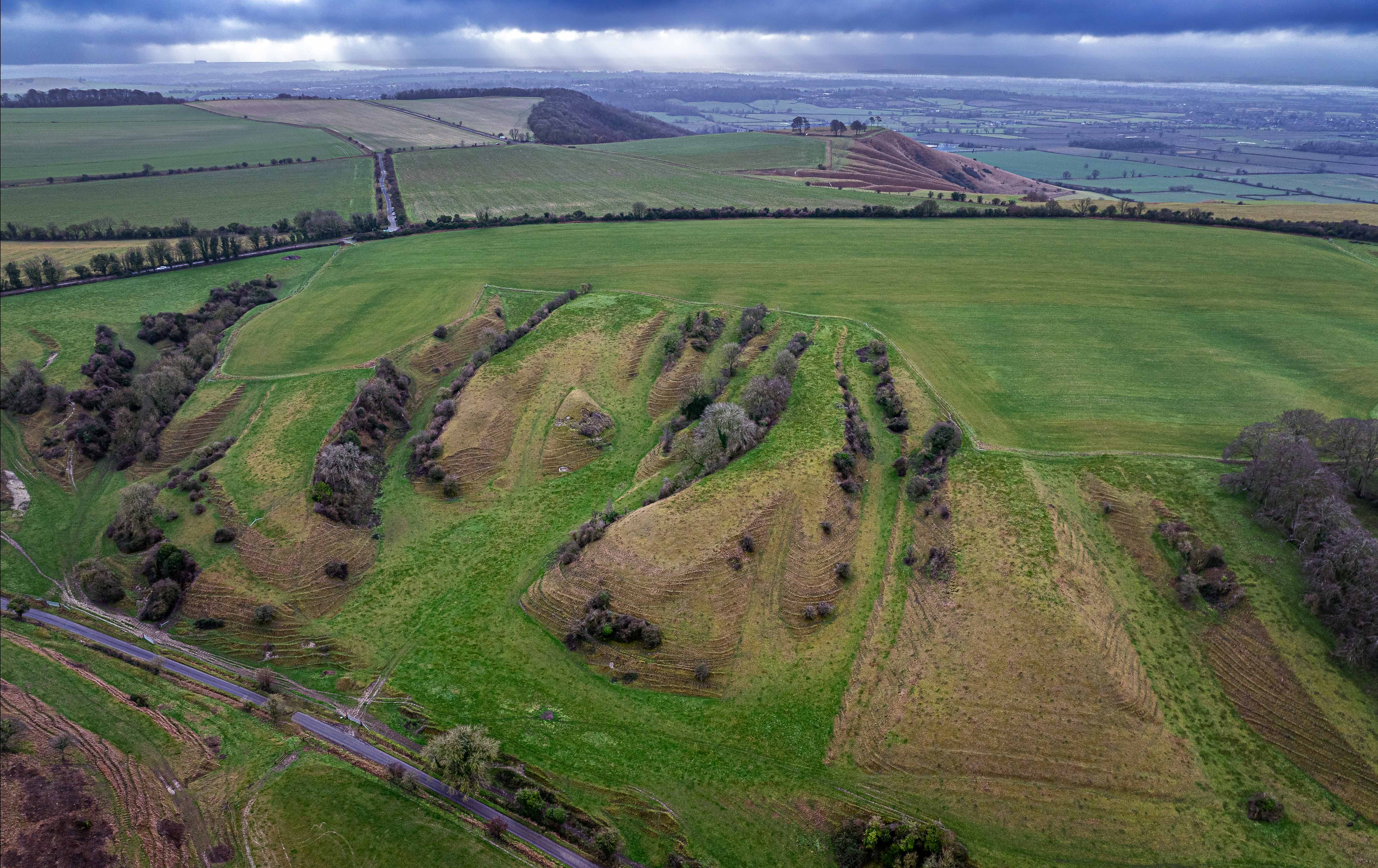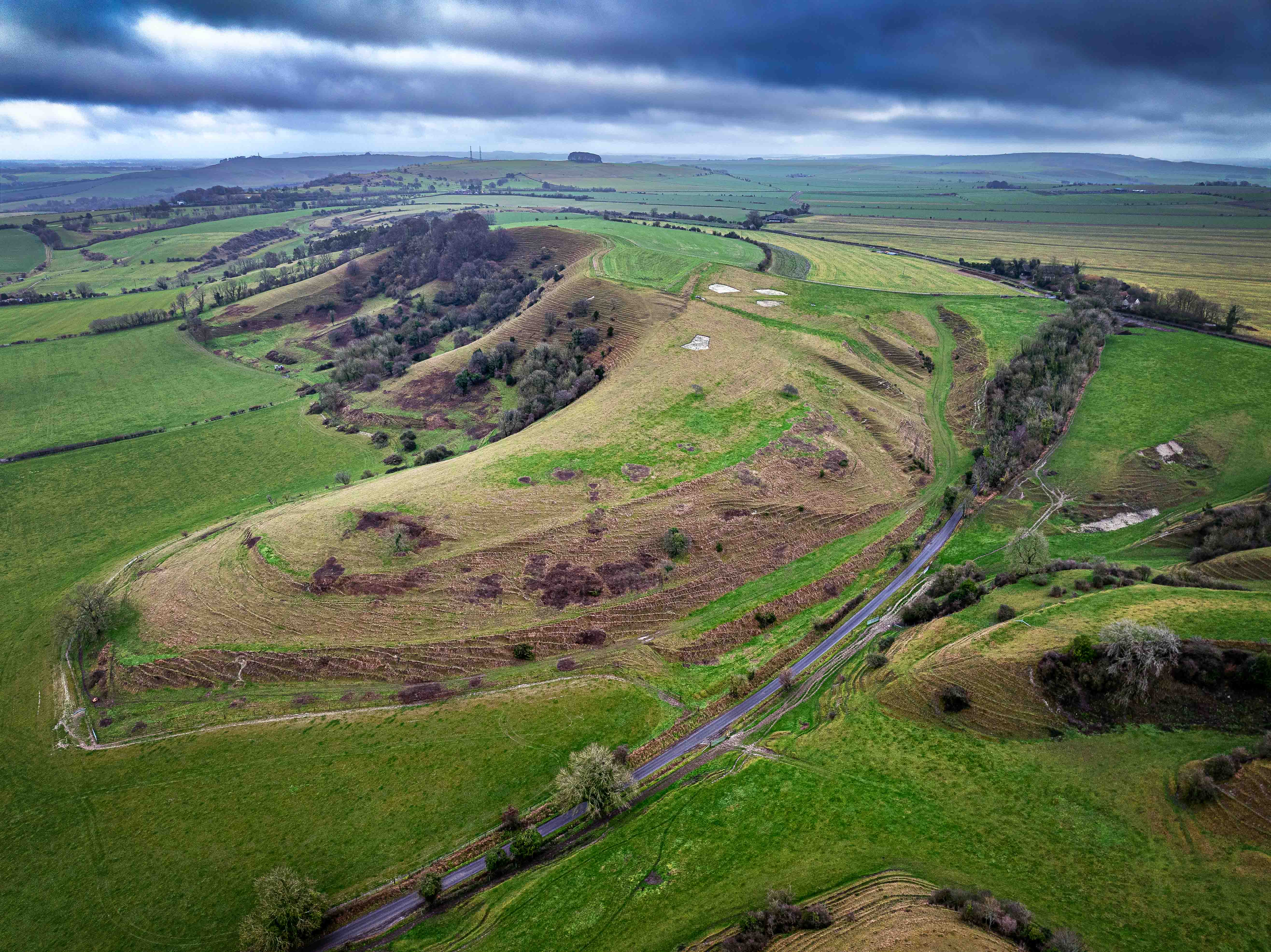 King’s Play Hill rises above the village of Heddington on the northern edge of the Wiltshire Downs, overlooking a landscape shaped by chalk geology and long human use.