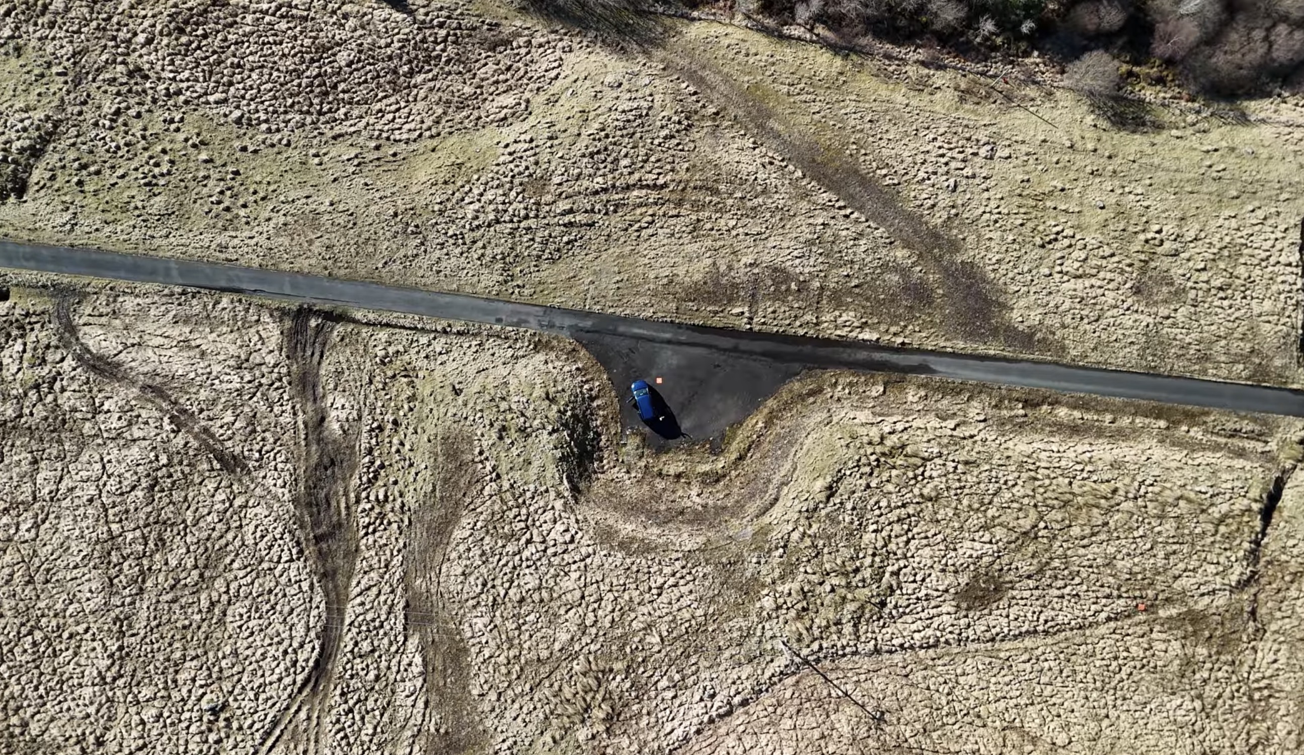 There was a "no drone zone" sign on the village hall, so I flew from a neighbouring beach to be discreet. But be warned: it's a really tricky and dangerous scramble across fallen rocks to get there.