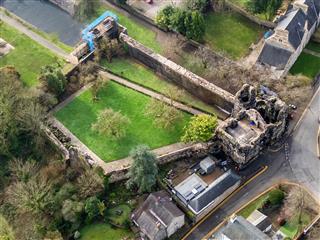 To the rear of the site (visible in the top-left of the photos near the modern scaffolding), there would have been private chambers, kitchens, and storehouses that supported a large medieval household.