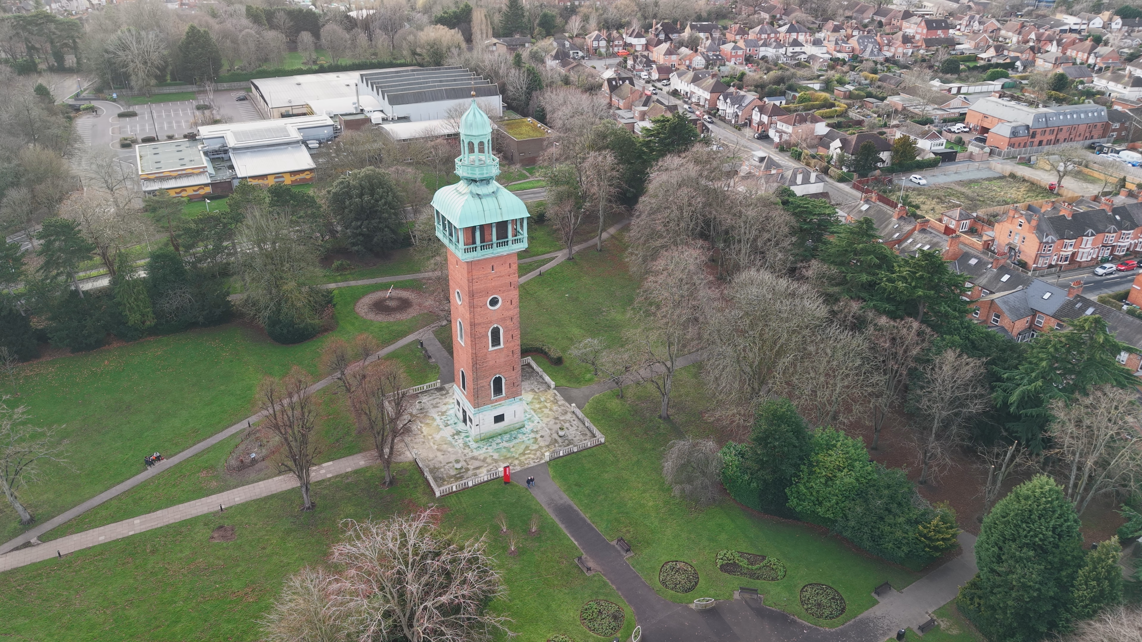 The Carillon War Memorial in Queen’s Park is situated in the centre of Loughborough, with 1 hour’s free parking adjacent on Granby Street. The park can get busy at peak times.