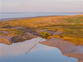 The visual appeal changes constantly with the tide. At high tide, the water "creeps" up the structure until only the beacon at the end is visible, while low tide exposes the surrounding mudflats and salt marshes.
