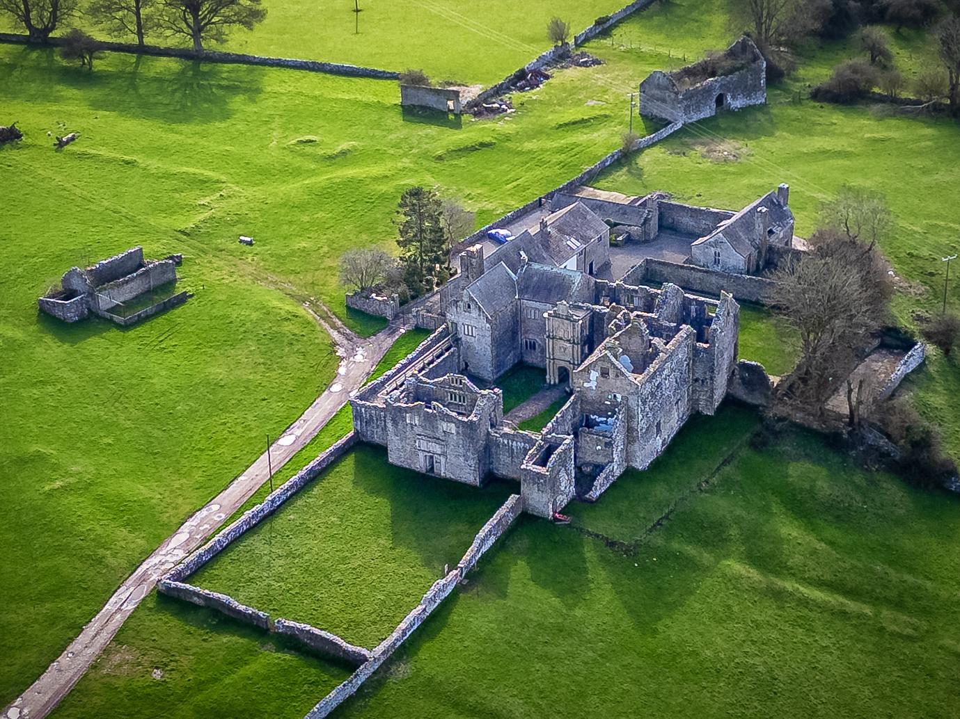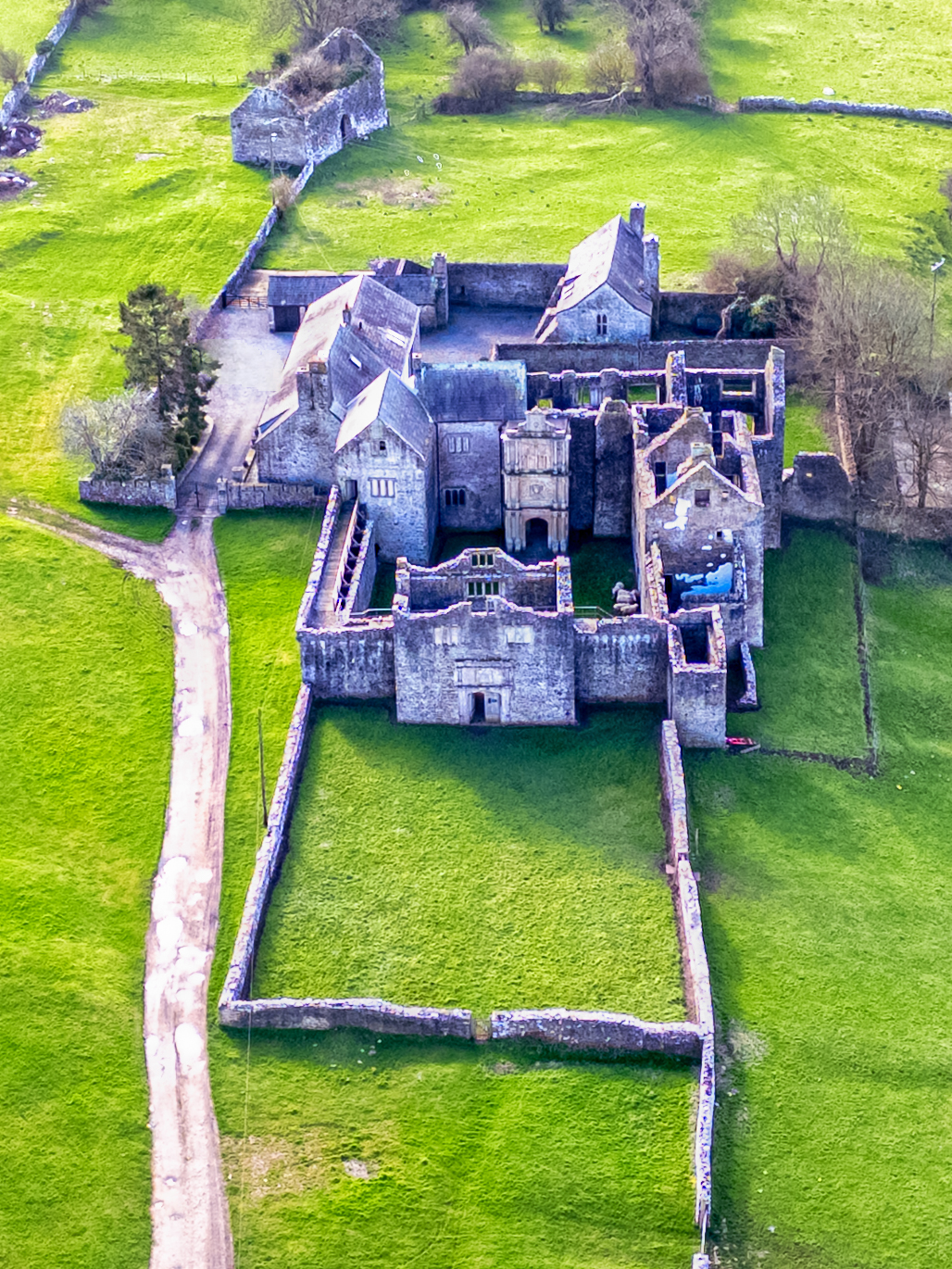 These aerial photos capture Old Beaupre Castle, located near Cowbridge in the Vale of Glamorgan. Despite its name, what you see isn't actually a military fortress, but a magnificent Elizabethan manor house built upon the foundations of a medieval predecessor.
