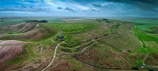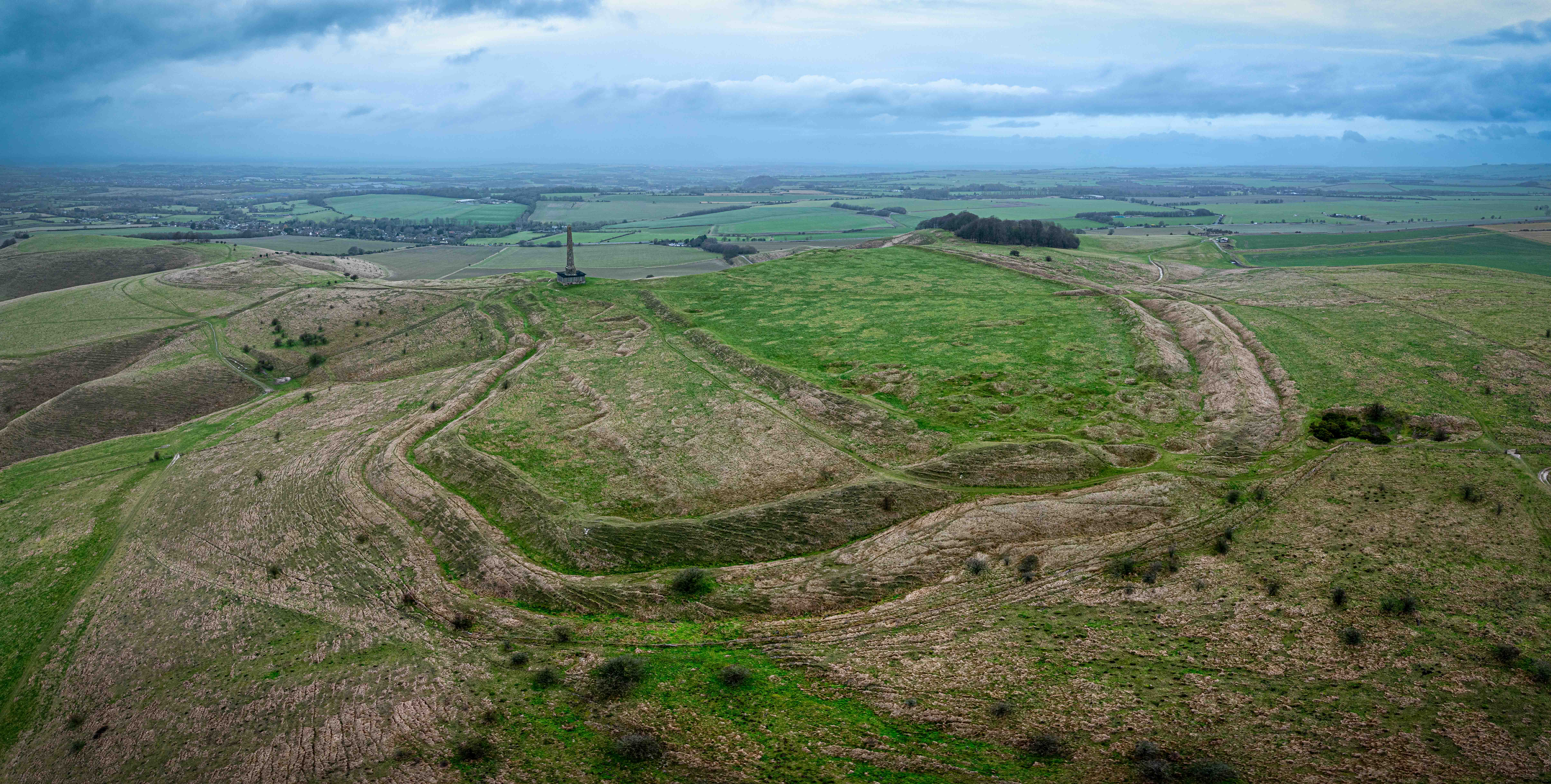 Kings Play Long Barrow and Round Barrow on its summit are two of the multitude of barrows and megaliths in the area, although both of these have been badly damaged over the years by ploughing and seeing them from the air doesn’t really do them justice