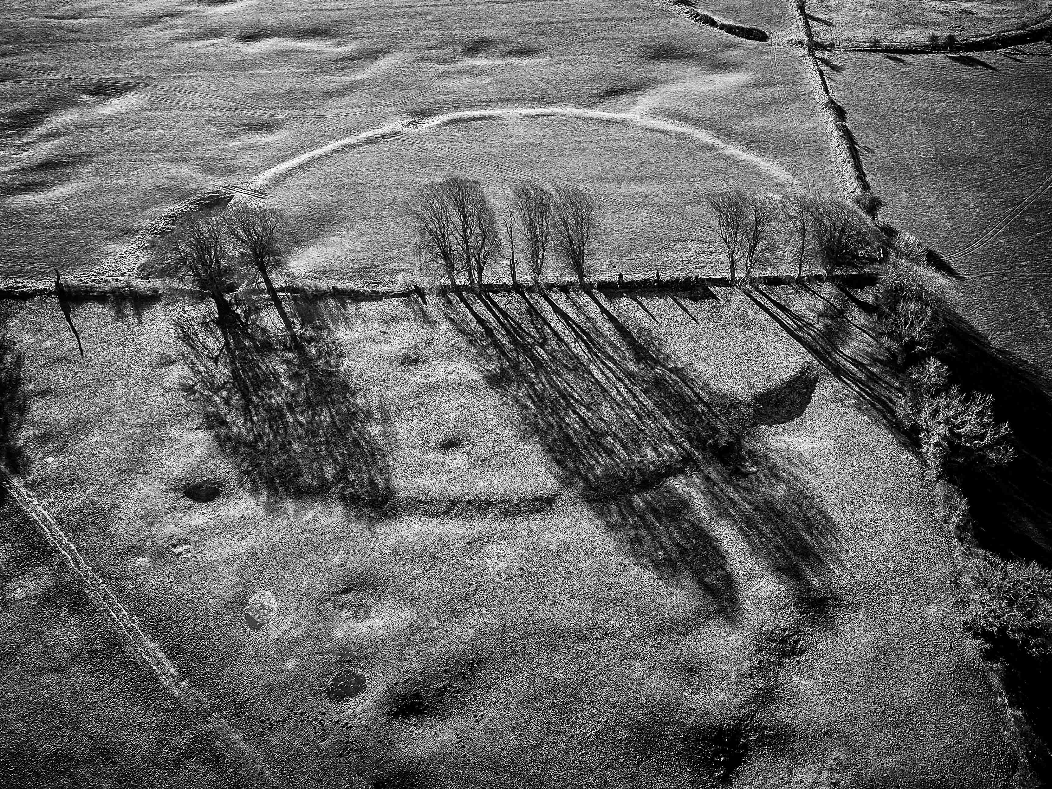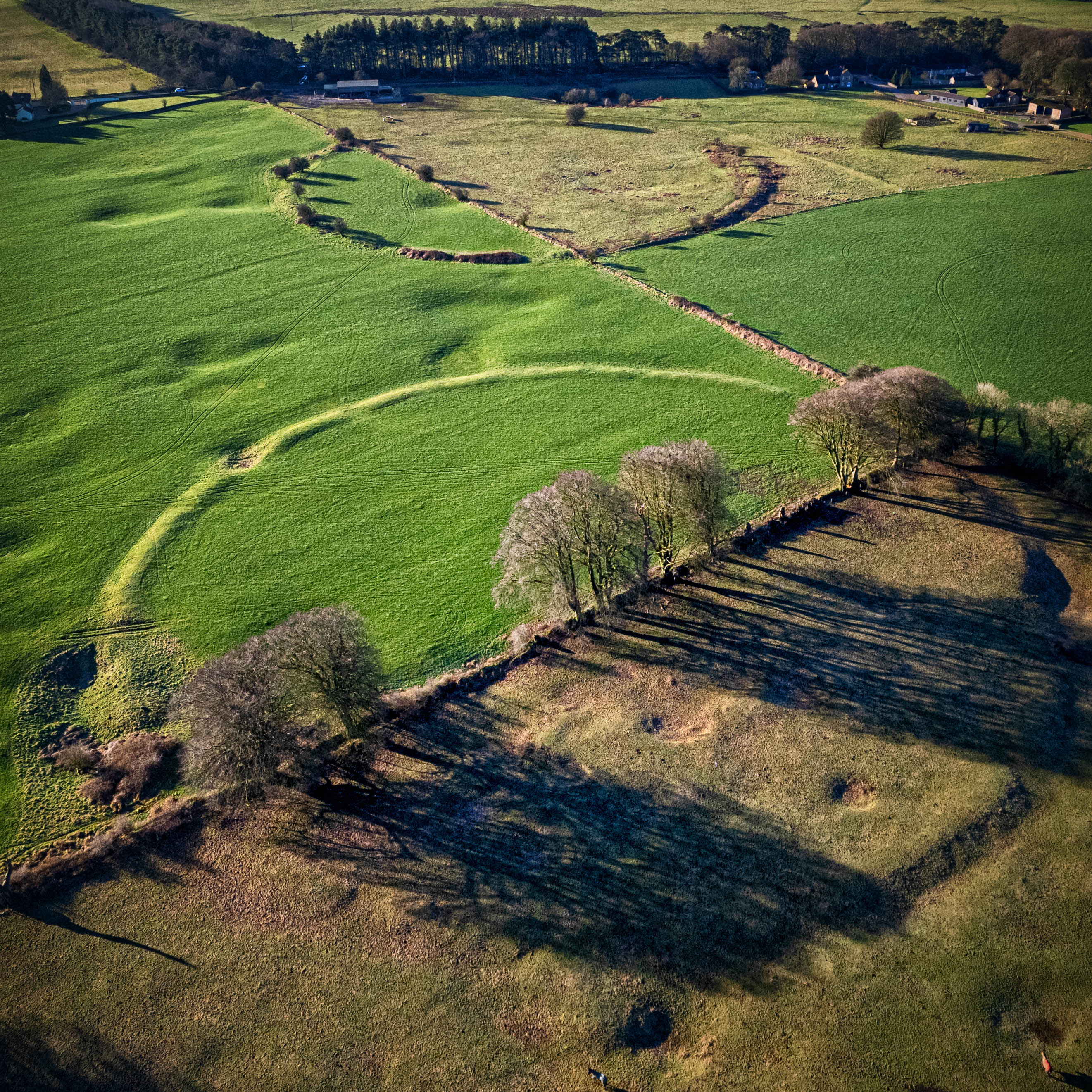 This image captures the site’s impressive preservation. The low-angled morning light emphasizes the concentric earthworks, revealing the depth of the ditches that once served as formidable barriers. It also illustrates how the fort utilises the natural plateau, with the steep southern slope providing a natural defence.
