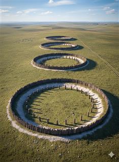 The Priddy Circles are a rare and enigmatic Neolithic monument (c. 3000–2500 BC) located on the Mendip Hills in Somerset. Unlike the stone-built Stonehenge, these four massive circular enclosures were originally constructed using earth banks and deep, steep-sided ditches cut into the limestone. Arranged in a slightly curved north-south line, their exact purpose remains a mystery, though their scale and linear alignment suggest a significant ritual or ceremonial function.