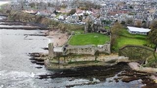 Some nice coastal scenery, the castle, and you can also fly and view some of the historic buildings of St Andrews University from here.