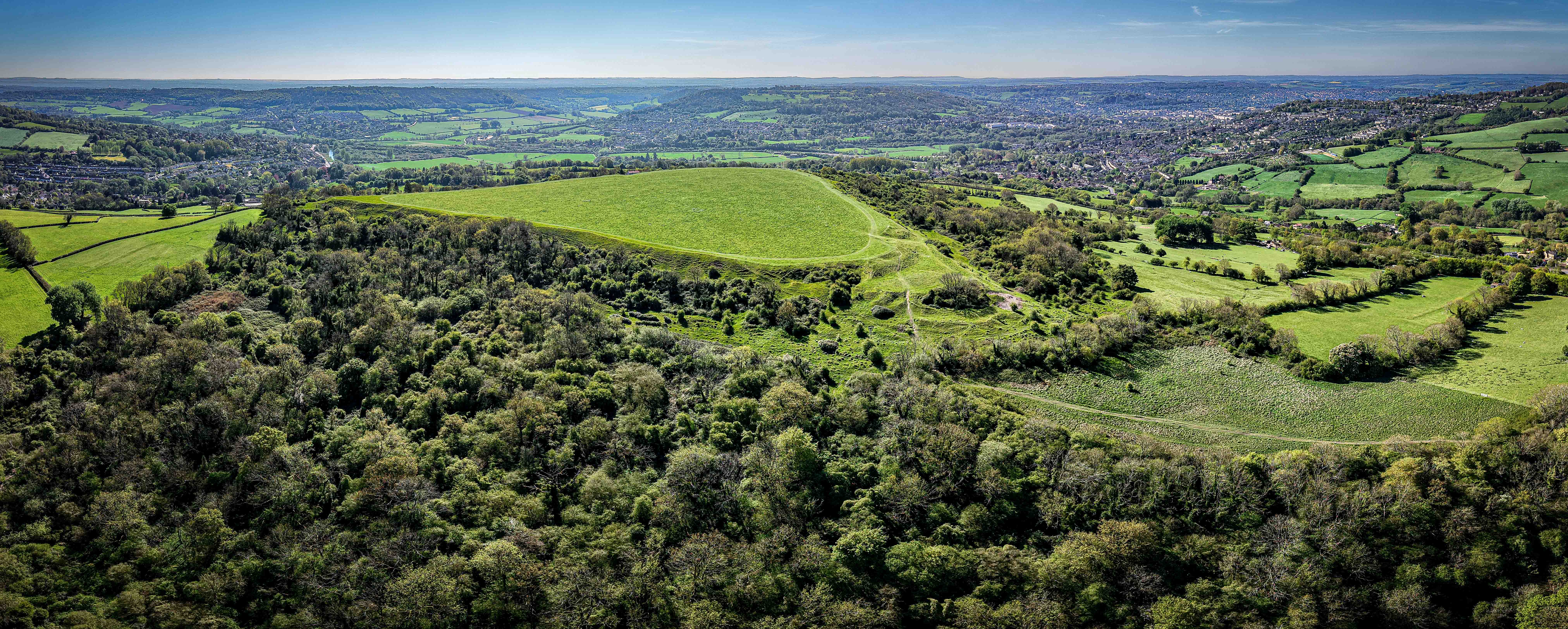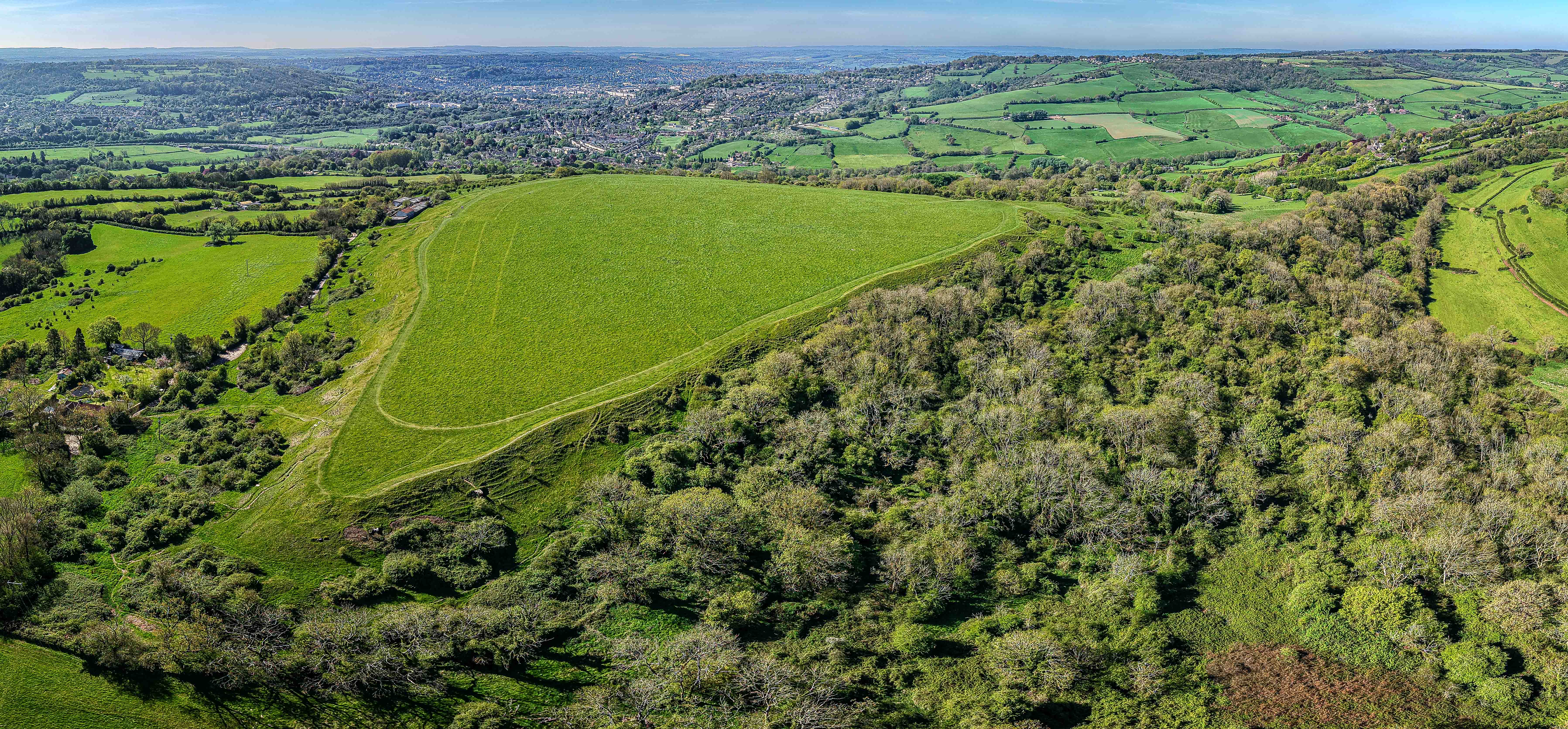 Dominating the skyline northeast of Bath, Little Solsbury Hill (known more commonly as simply "Solsbury Hill") is one of the most recognisable landmarks in the West Country. This flat-topped 20+ acre "table mountain" served as an Iron Age hill fort, occupied between 300 BC and 100 BC. Unlike the sprawling ramparts of Hinton Hill (AKA Dyrham Camp), Solsbury Hill is characterised by its distinct, triangular plateau, which was once enclosed by a substantial stone-built wall rather than simple earth banks.