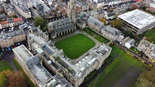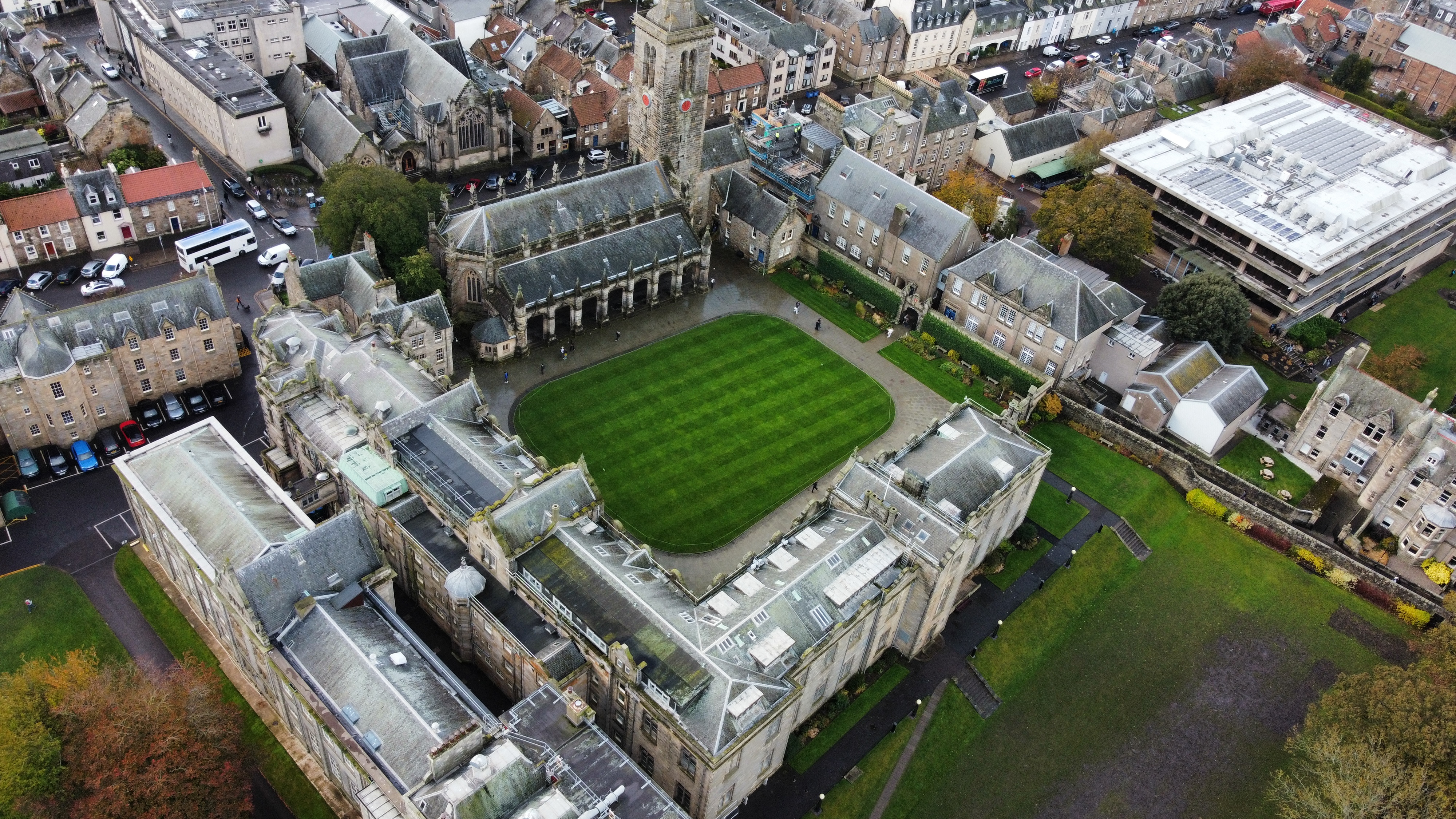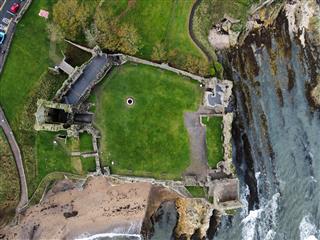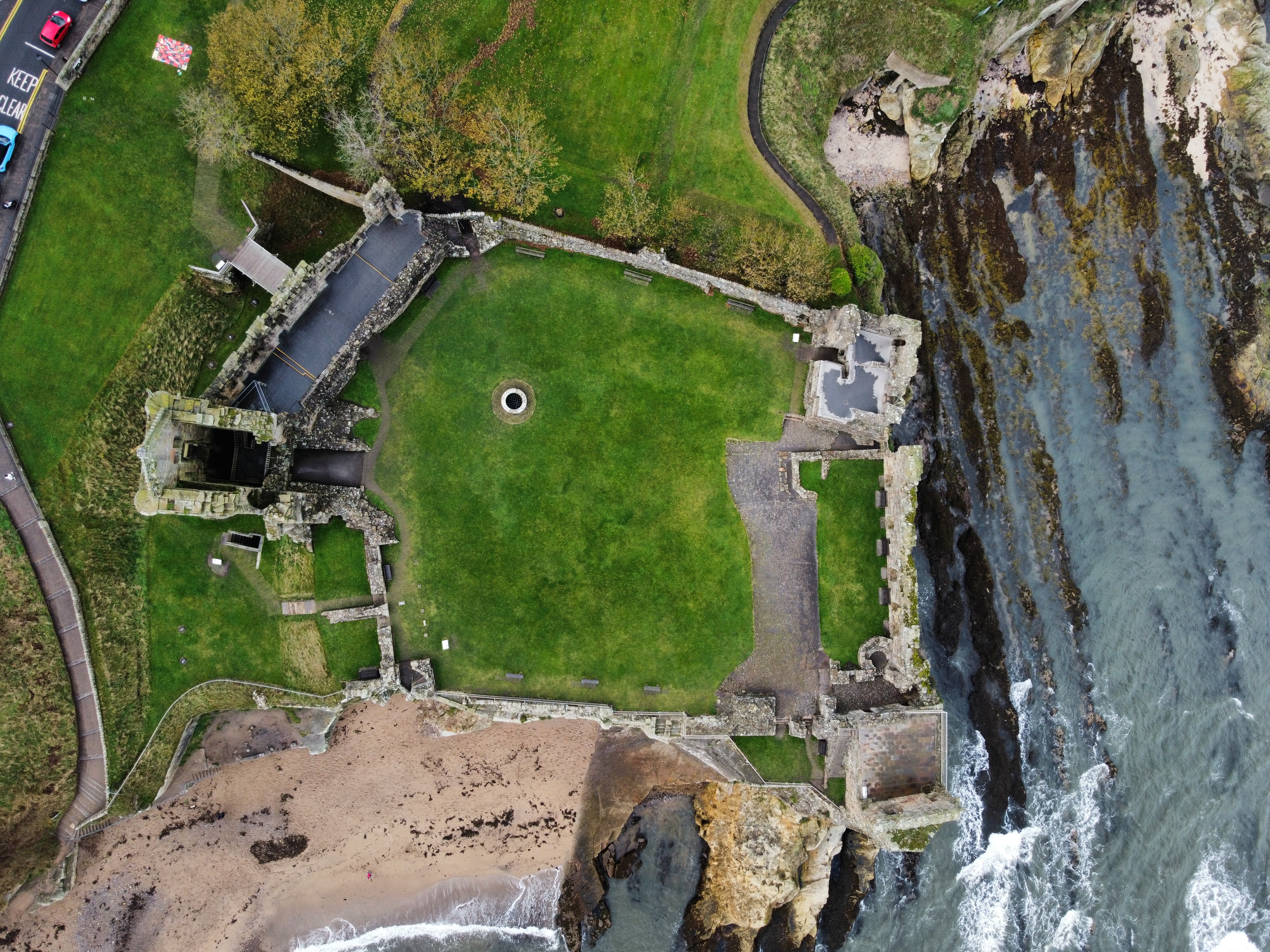 Some nice coastal scenery, the castle, and you can also fly and view some of the historic buildings of St Andrews University from here.