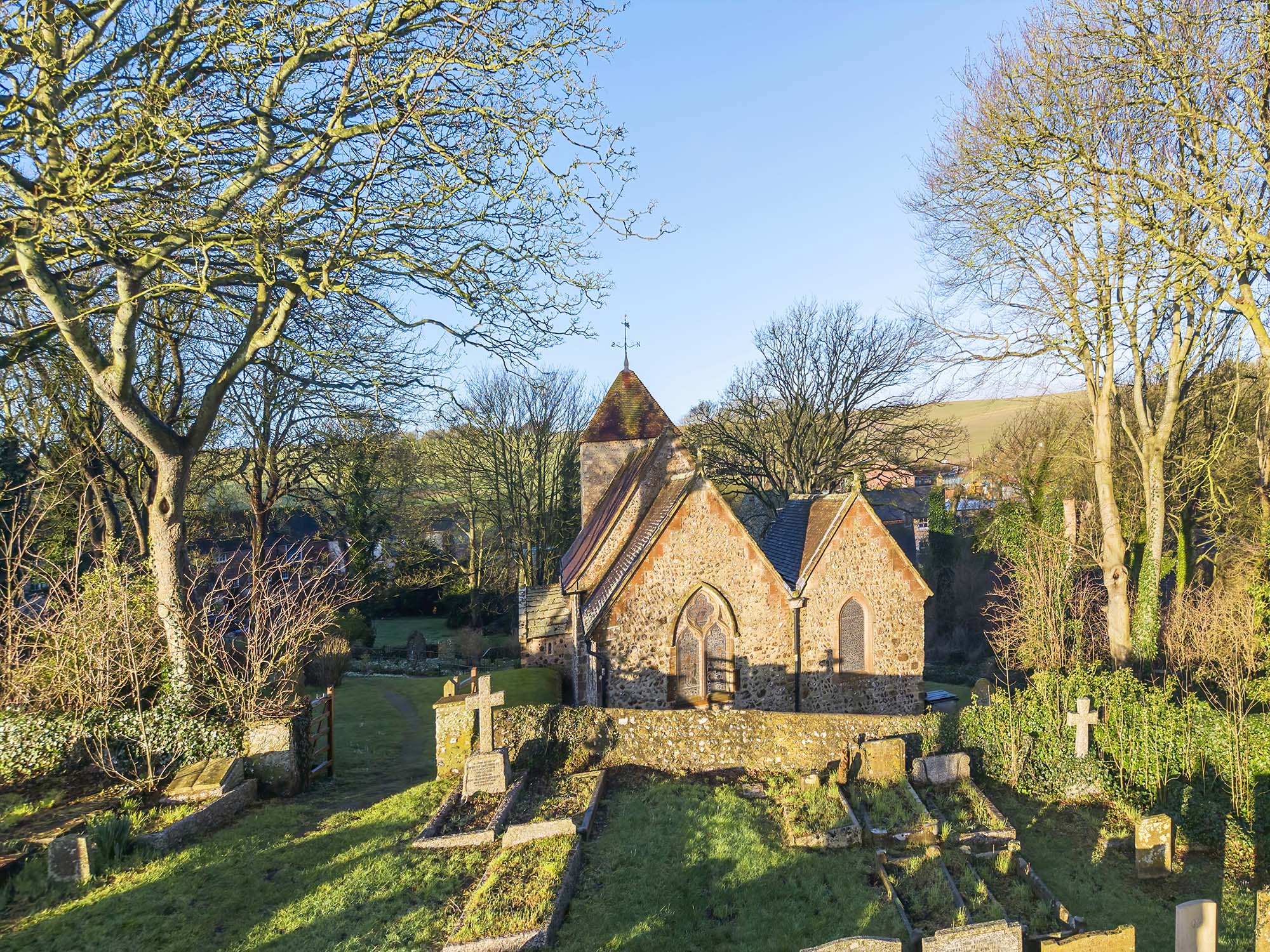 One of the oldest churches in Sussex dating from 998 is St Laurence parish church in the south downs hamlet of Telscombe. A grade 1 listed building.