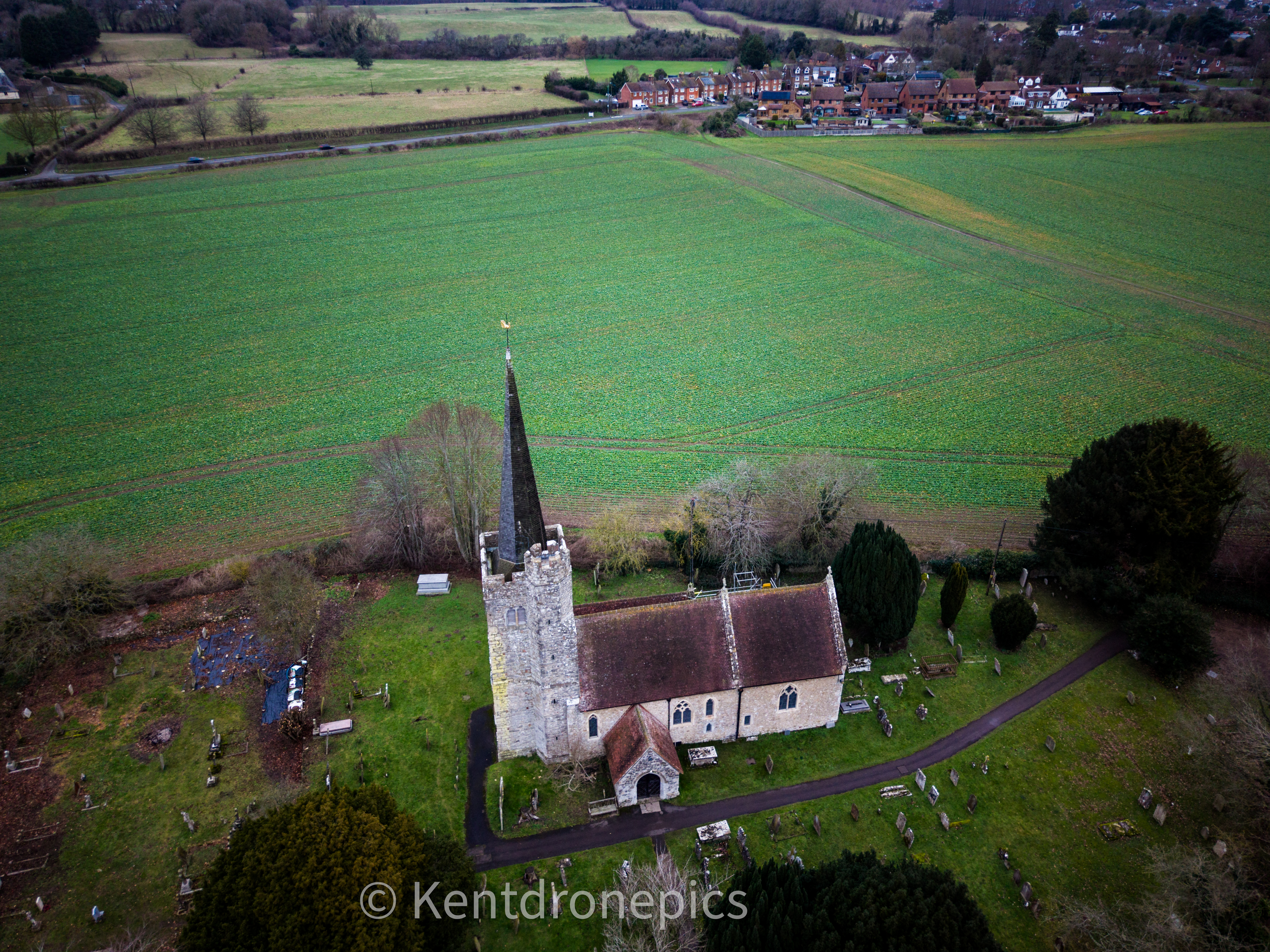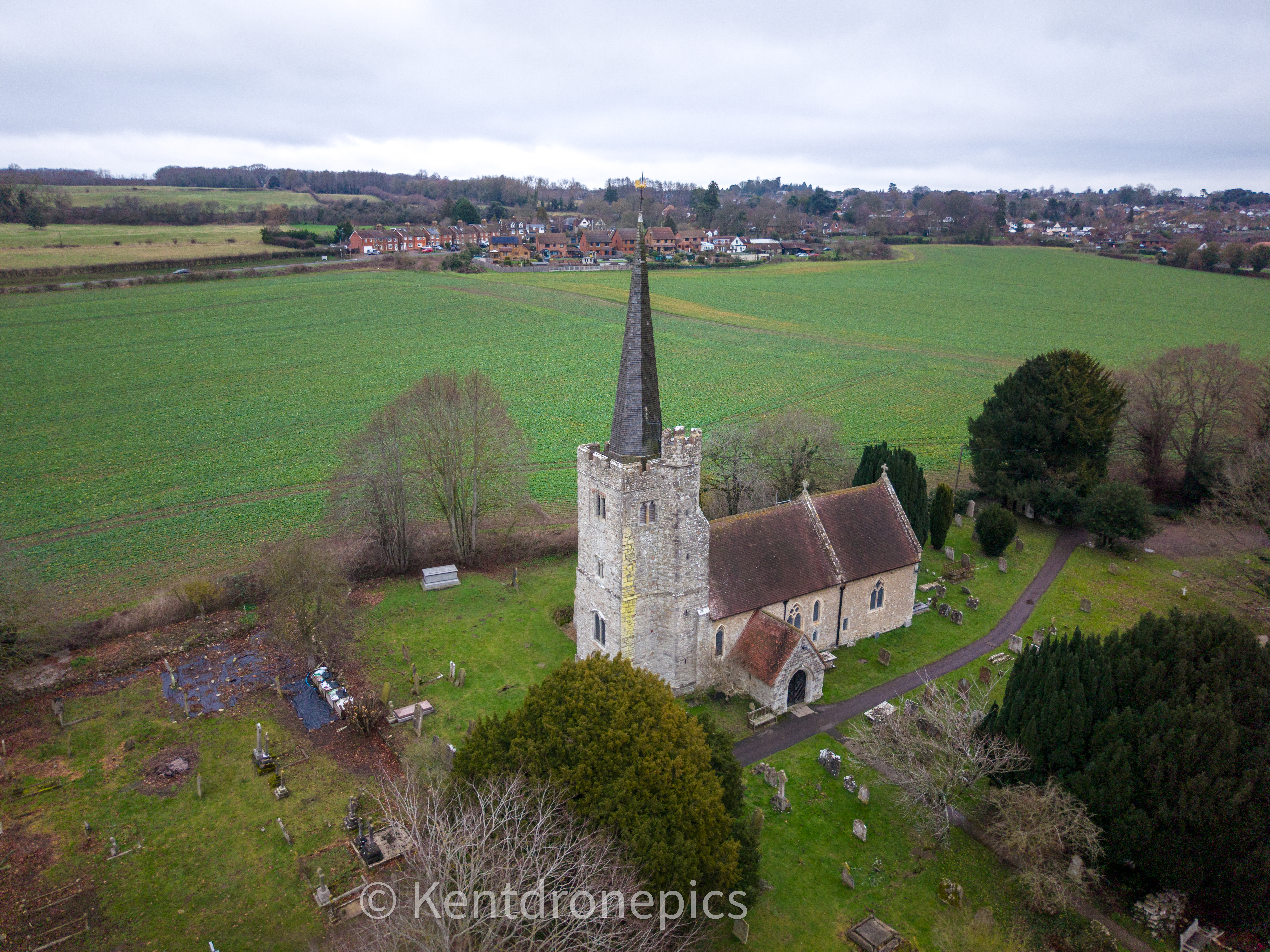For those interested in ancient historic churches, The Church of St Nicholas is the local parish church with its origins in the 14th century. The historical and architectural evidence suggests that it was constructed largely in a single building period c.1300. It’s a Grade 1 listed building and nice to view from the air