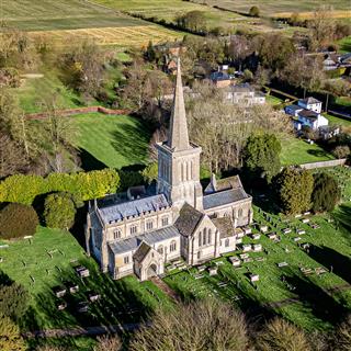 This elevated perspective highlights how the church has served as both a spiritual and geographical anchor for the surrounding rural community for nearly a millennium.