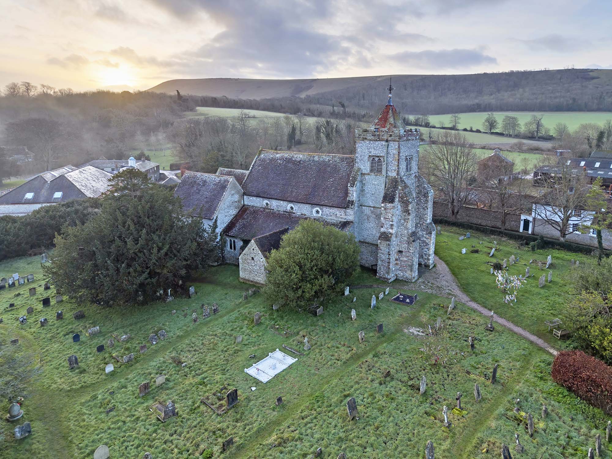Nestled in the South Downs and dating from the 12th century is St Peters Parish Church in Firle East Sussex. It is a grade 1 listed building.
