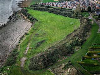 The photos capture a "clash of eras." The Iron Age banks sit adjacent to the ruins of a 12th-century Norman chapel (see bottom right hand edge of 2nd photo) and the massive industrial infrastructure of the Severn Tunnel pumping station, highlighting Sudbrook's 2,000-year role as a gateway to Wales.