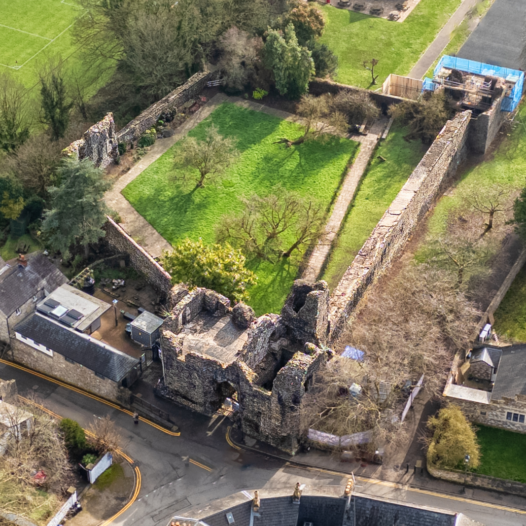 To the rear of the site (visible in the top-left of the photos near the modern scaffolding), there would have been private chambers, kitchens, and storehouses that supported a large medieval household.
