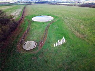 “Enclosure Rights” was produced by an artist called Jony Easterby, who is famous for his works empathy for the natural world and a sense of place within culture and social context. Drawing on the archaeological importance of the area, the sculpture consists of a new chalk path, edged with split oak posts leading up to a raised platform over-looking a dew pond. Jony Easterby worked with archaeologists to research the cultural landscape of the area and develop an artwork inspired by the ancient history. The sculpture actually sits next to an ancient ditch and dyke earthwork, so Jony drew upon bronze age barrow forms to create the shape. There are also a number of wooden carved oak figures known as “The Guardian Warriors”, based on a number of tiny carved chalk warriors found in the nearby Derwent Valley. It was believed the figures were based on members of the local iron age tribe who habited the area at the time of the Roman invasion known as the Paresi.