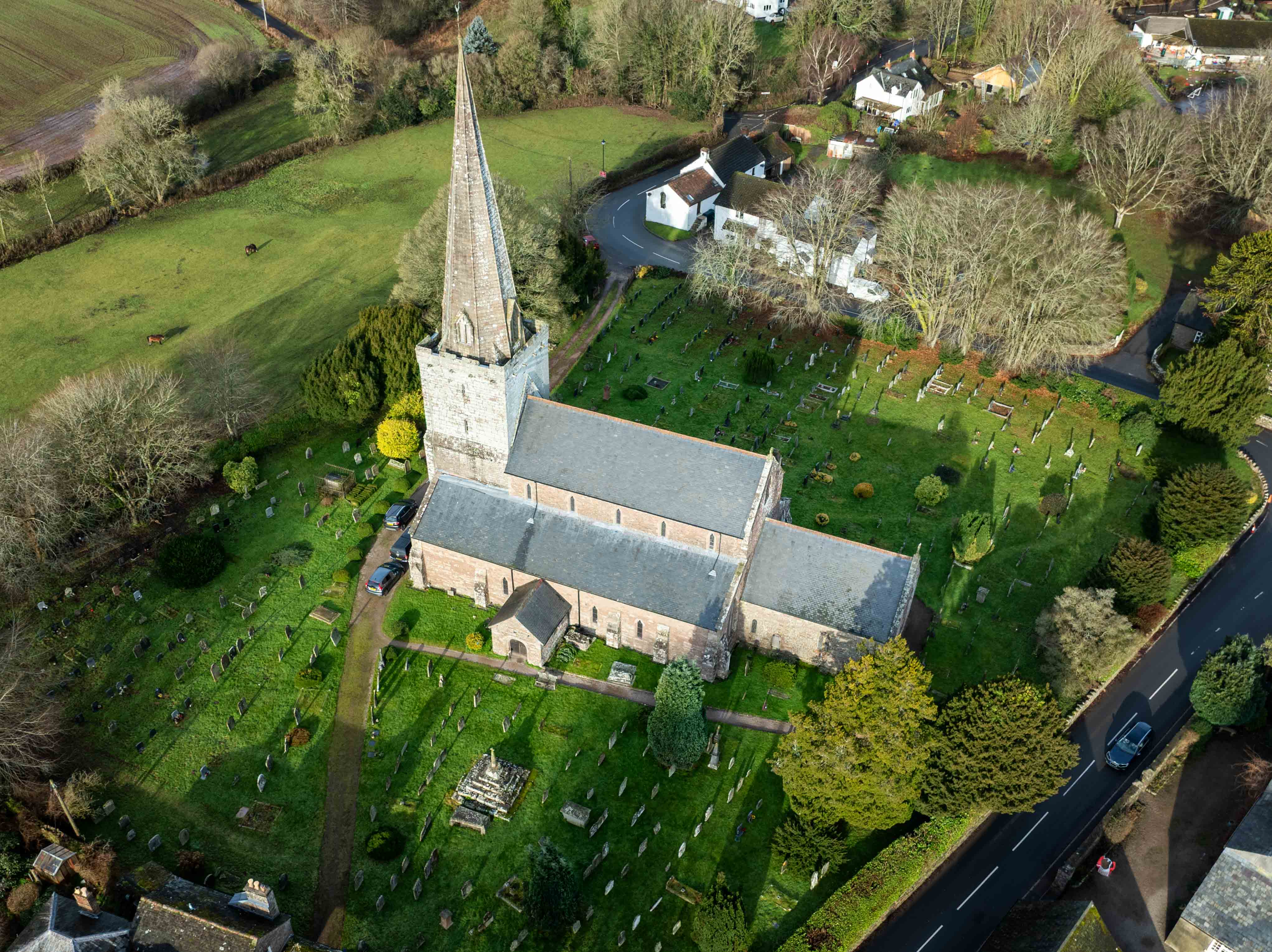 For those interested in ancient historic churches, The Church of St Nicholas is the local parish church with its origins in the 14th century. The historical and architectural evidence suggests that it was constructed largely in a single building period c.1300. It’s a Grade 1 listed building and nice to view from the air