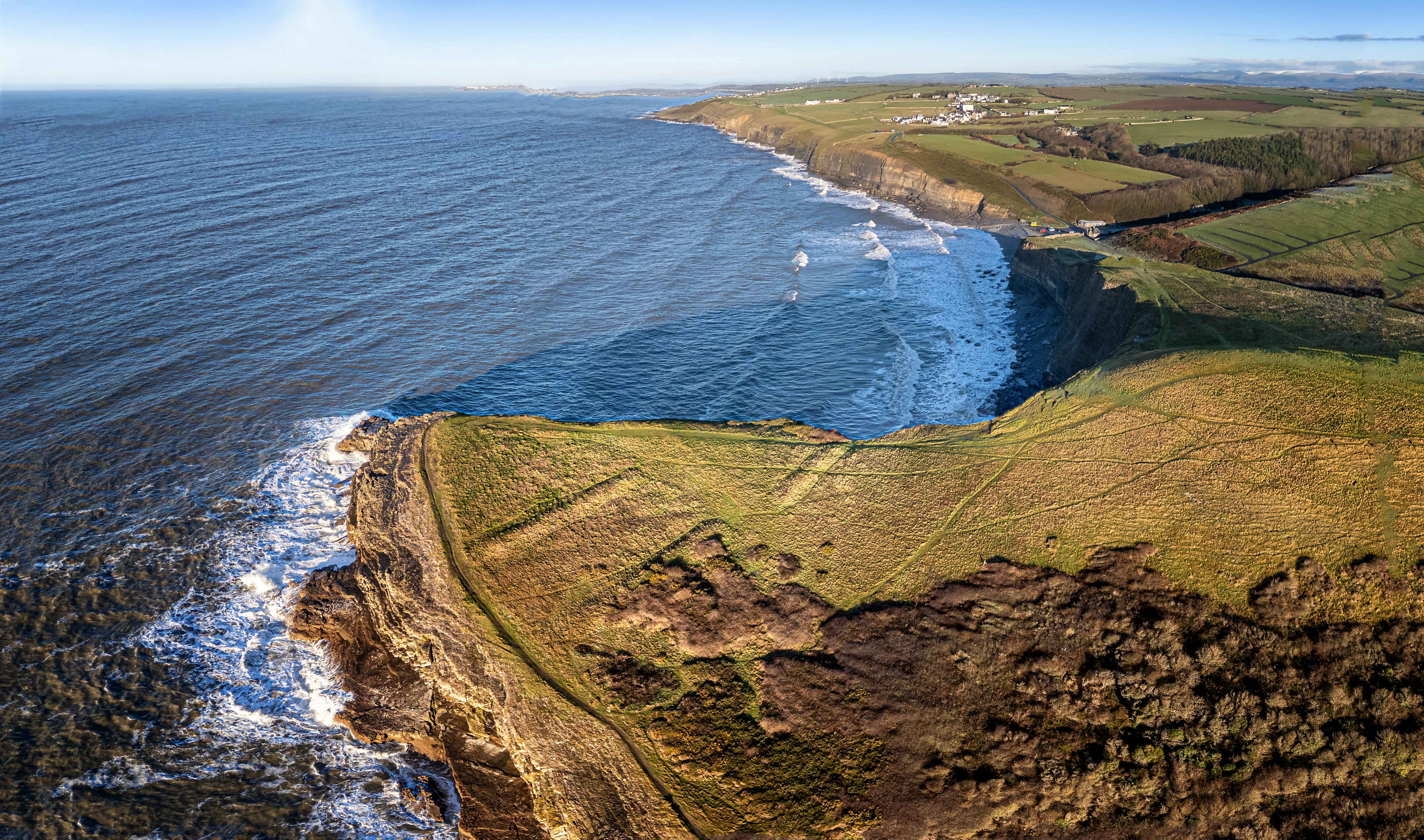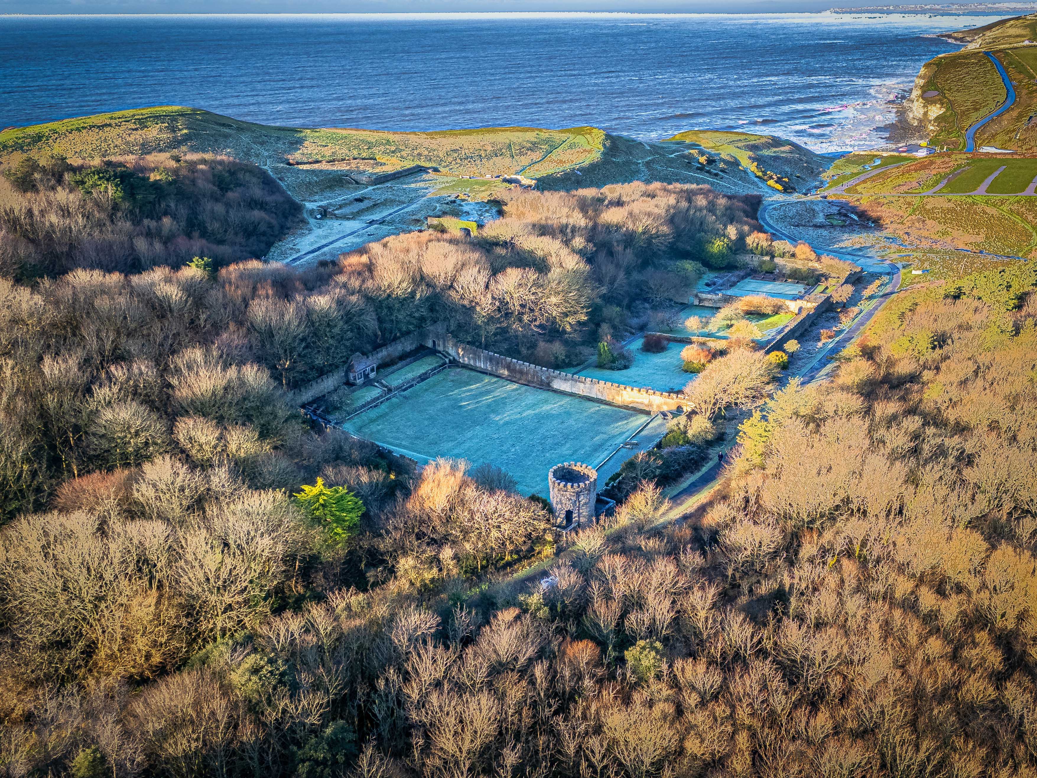 The estate has the Wales Coastal Path crossing its lands and the remnants of Dunraven Castle (that was still in use until the late 50's but essentially is foundations / ruins now). The area is popular with walkers and surfers and you will almost always find a fellow droner or photographer somewhere around. The image is the of the iconic 'Withces Point' as it looks like a witches hat from the air. This part almost always has folks fishing. Some stepp climbs and dangerous cliffs but stout footwear and lots to see. In teh summer months there is also a kiosk that opens.